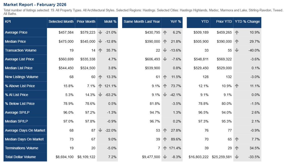 Central & North Hastings Market Minute (Stirling, Madoc, Marmora & Tweed) – February 2026